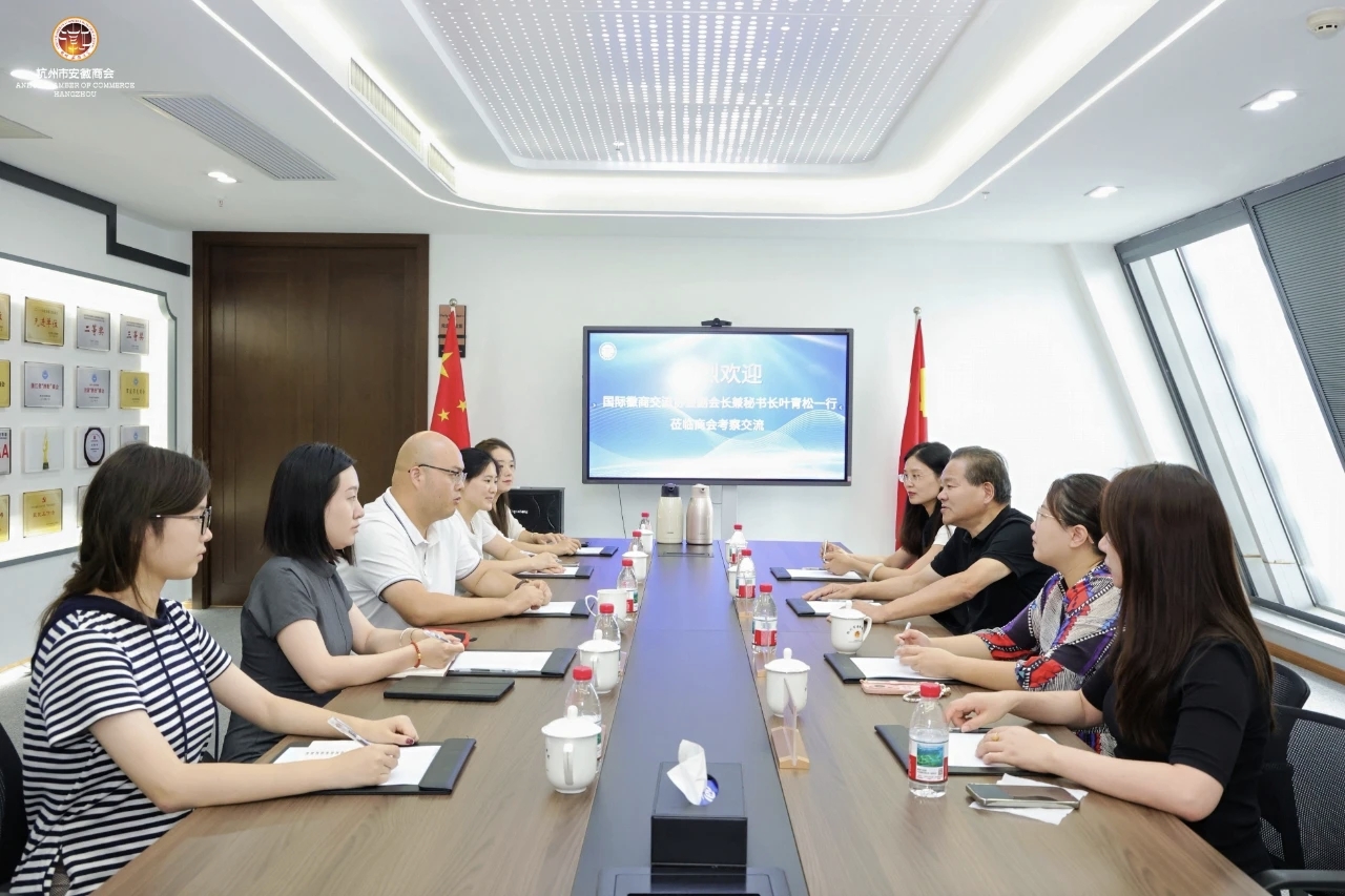 在杭州市安徽商会,秘书长兼党支部书记周帅在交流中说,商会秉持“服务会员、凝聚乡情、促进合作、反哺杭皖”宗旨,拥有500平方办公不动产权,获评“AAAAA”级社会组织、全国“四好”商会和浙江省品牌社会组织。商会“以党建推进商会建设”,创新“党建+会建”模式,通过红色教育、主题论坛、“党员先锋岗”等活动,将政治优势转化为发展动能。进一步发挥党组织的核心作用,拥护、服从、学习党组织的传统作风,结合商会和会员发展情况,发挥商会桥梁纽带作用,促进会员企业抱团取暖、互帮互助、同舟共济,再创新的辉煌。在双招双引方面,商会积极助力杭州并联结皖浙,宣传两地的营商环境,引导会员加大投资,参与杭州市“五大产业生态圈”建设及重大经贸活动。搭建桥梁,组织返乡考察、协助皖地来杭招商引才,服务安徽“三地一区”建设。杭州市安徽商会引导会员投身公益慈善、乡村振兴、共同富裕(如“健康学校公益基金”、年度献血、养老慰问等),树立徽商“义利并举”形象。